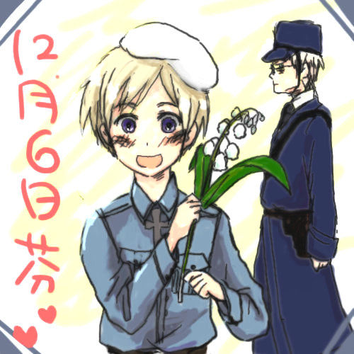 12/06芬蘭独立記念日! かわいいなぁぁぁぁ!おめでとおお! 嫁を描いたらかならず旦那も描いてしまう法則。旦那服長いな。 フィンはロシア様系の顔つきだと理解してはいるんですが、可愛く描いてしまう罠。 イギーとかフィン、ポーやイタ、日はどれだけ可愛らしく描いてもイイと思っています。 彼の国花はスズランです。国鳥はオオハクチョウ。首都ヘルシンキ 受験競争はないのに教育水準はトップレベル。だが高い自殺率とアルコール依存症が社会問題。 ムーミンの祖国v自称スオミ!